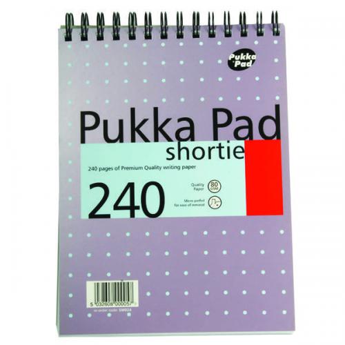 The Pukka Shortie notebook contains 240 pages of high quality 80gsm paper, which is feint ruled for neat note-taking. The notebook measures 235 x 178mm and is headbound with a wire binding, which allows it to lie flat. The pages are also perforated for easy removal. This pack contains 3 x A5 notebooks.