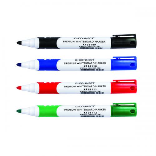 For an easy way to brainstorm, plan and coordinate in your workplace, use these Q-Connect Premium Whiteboard Markers. Results are vivid and clear with an odourless ink that is easily wiped from the surface of a whiteboard, requiring nothing more than a dry cloth. The barrel features a comfort grip for extended use in classrooms or at the office. This assorted pack contains 4 markers in black, blue, red and green.